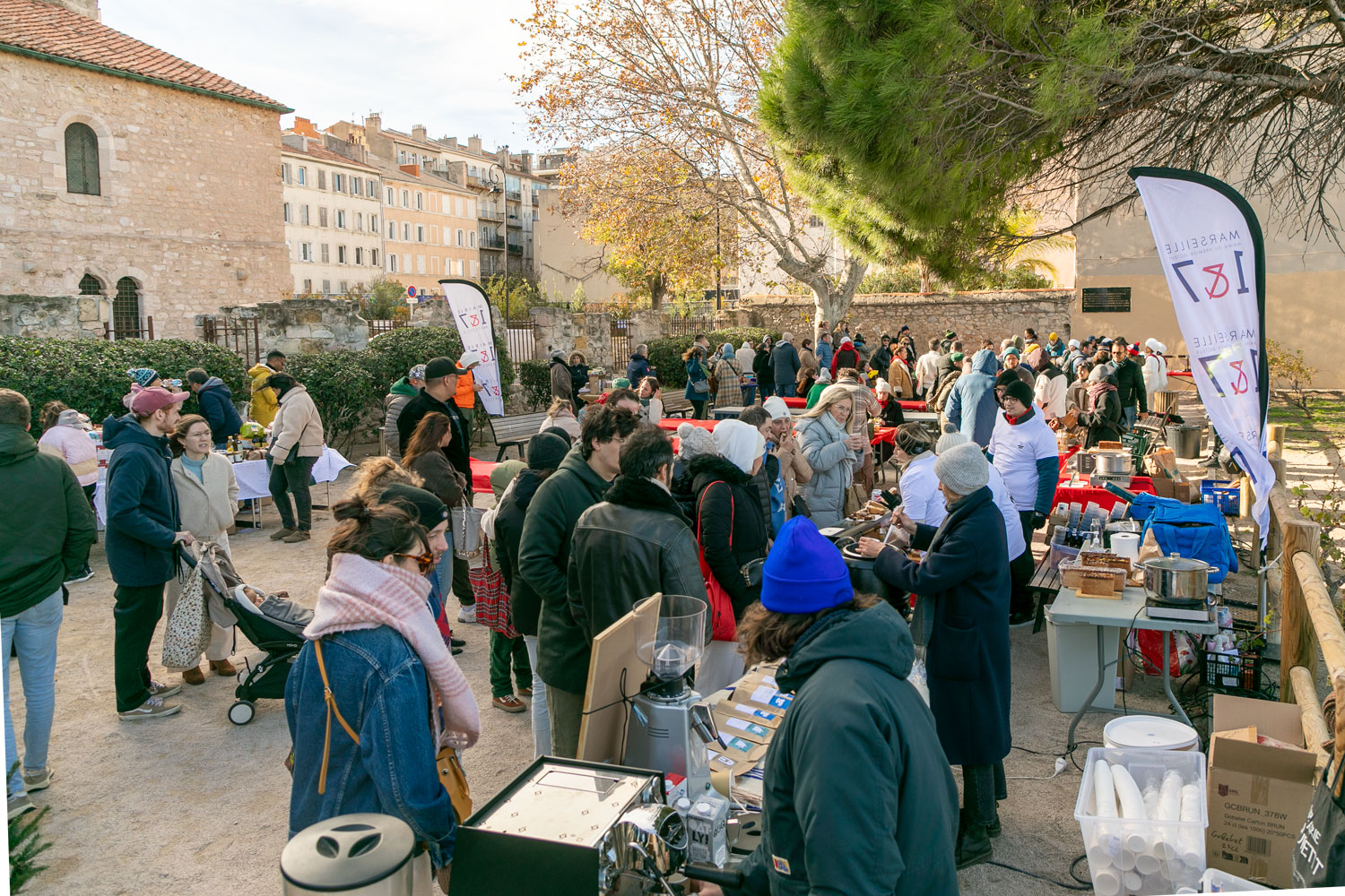 Fort du succès de l'an dernier, la Mairie 1-7 a reconduit cette pause gustative accompagnée d'un marché spécial Noël avec de nombreux produits gourmands : pompe à l'huile, pâté en croûte, arancinis à la truffe. Vous trouverez également des objets d'artisanat locaux (céramiques, papeterie, illustrations originales de scènes de vie marseillaises, bougies naturelles...) . Et pour égayer encore ce temps fort, chants Gospels avec le groupe Joyfully Gospel.