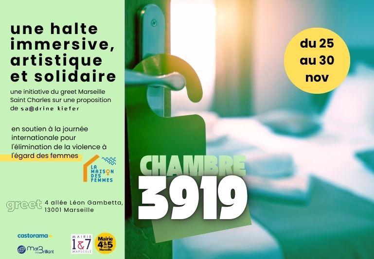 Chambre 3919 est un dispositif immersif, artistique et solidaire organisé du 25 au 30 novembre 2025 en soutien à la Journée internationale pour l'élimination de la violence à l'égard des femmes et au profit de la Maison des femmes.