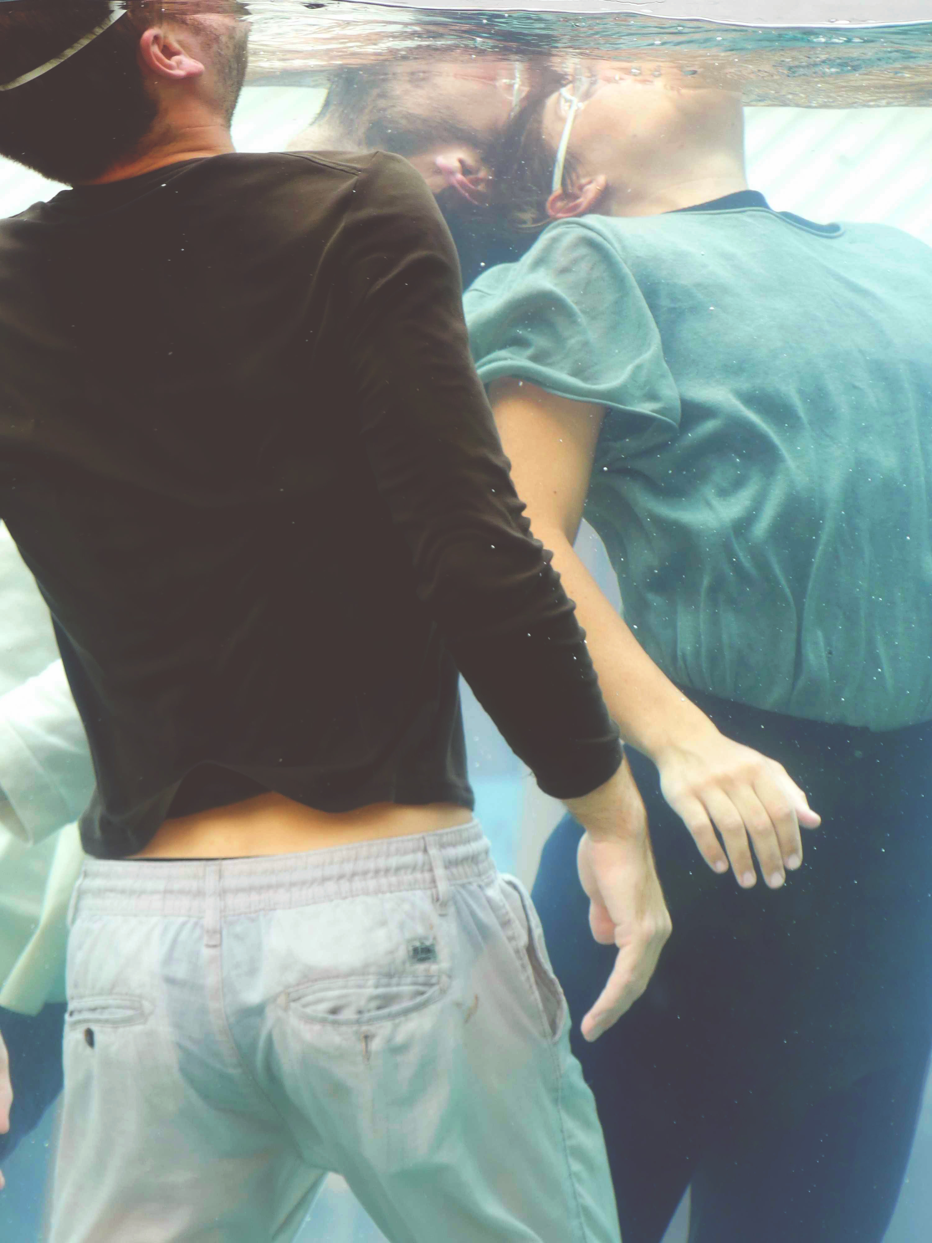 Dans un aquarium géant, les acrobates Sébastien Davis-Vangelder et Frédéri Vernier réalisent leur rêve : rassembler le cirque et l’apnée sur scène. Dans leur chorégraphie à la fois pure et fulgurante, inspirée du cycle de l’eau, ils mélangent cirque et danse d’un genre nouveau. Les corps, en apesanteur, se croisent au ralenti, forment une ronde tout en synchronisant leur respiration. Une invitation à observer l'eau qui nous entoure