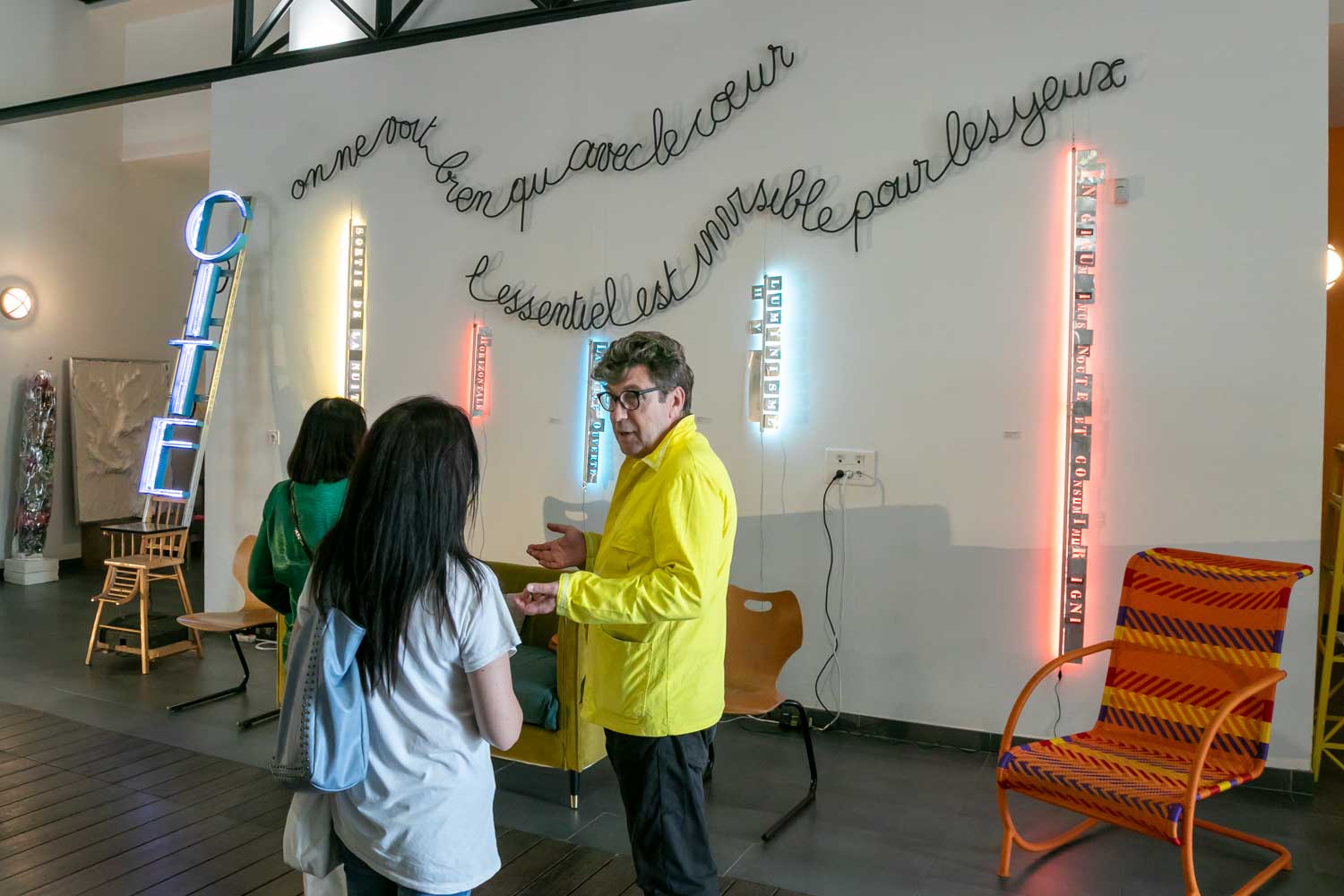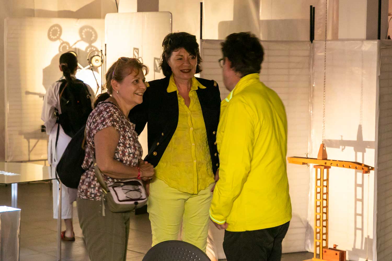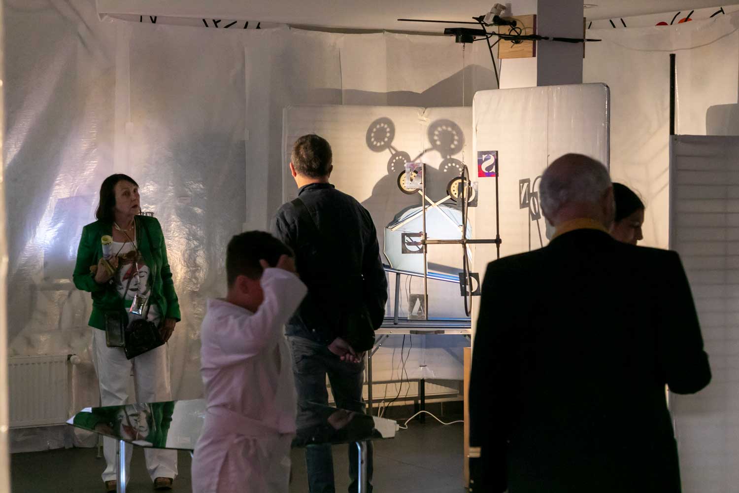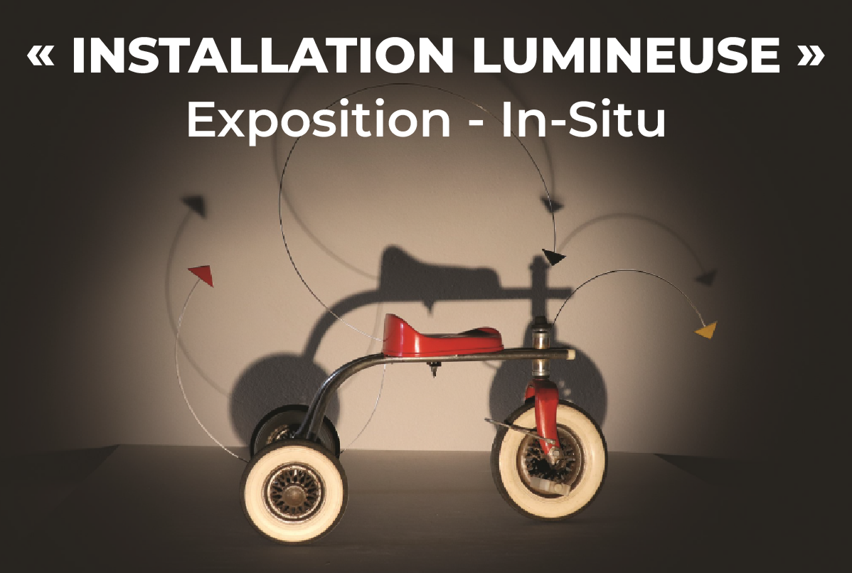 Installation lumineuse est une scénographie itinérante proposant de découvrir des oeuvres d'art contemporain appartenant à T Public, association d'idées (théâtre de rue). Chaque scénographie s'adapte au lieu en jouant sur les lumières, l'espace, un cheminement.