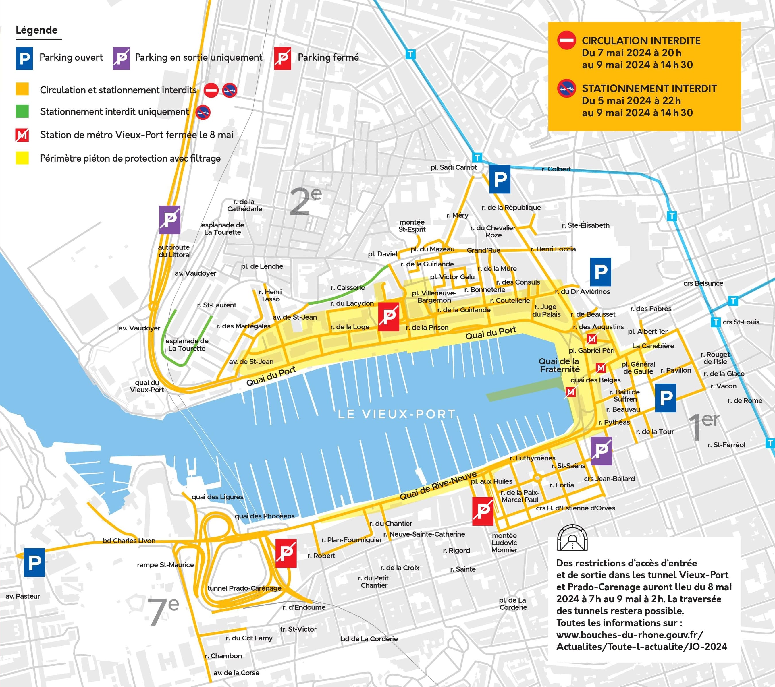 Pour toutes informations concernant les restrictions de circulation durant l'évènement, consultez la carte ci-dessus ou rendez-vous sur le site internet de la Ville : https://www.marseille.fr/.../actua.../flamme-olympique-acces