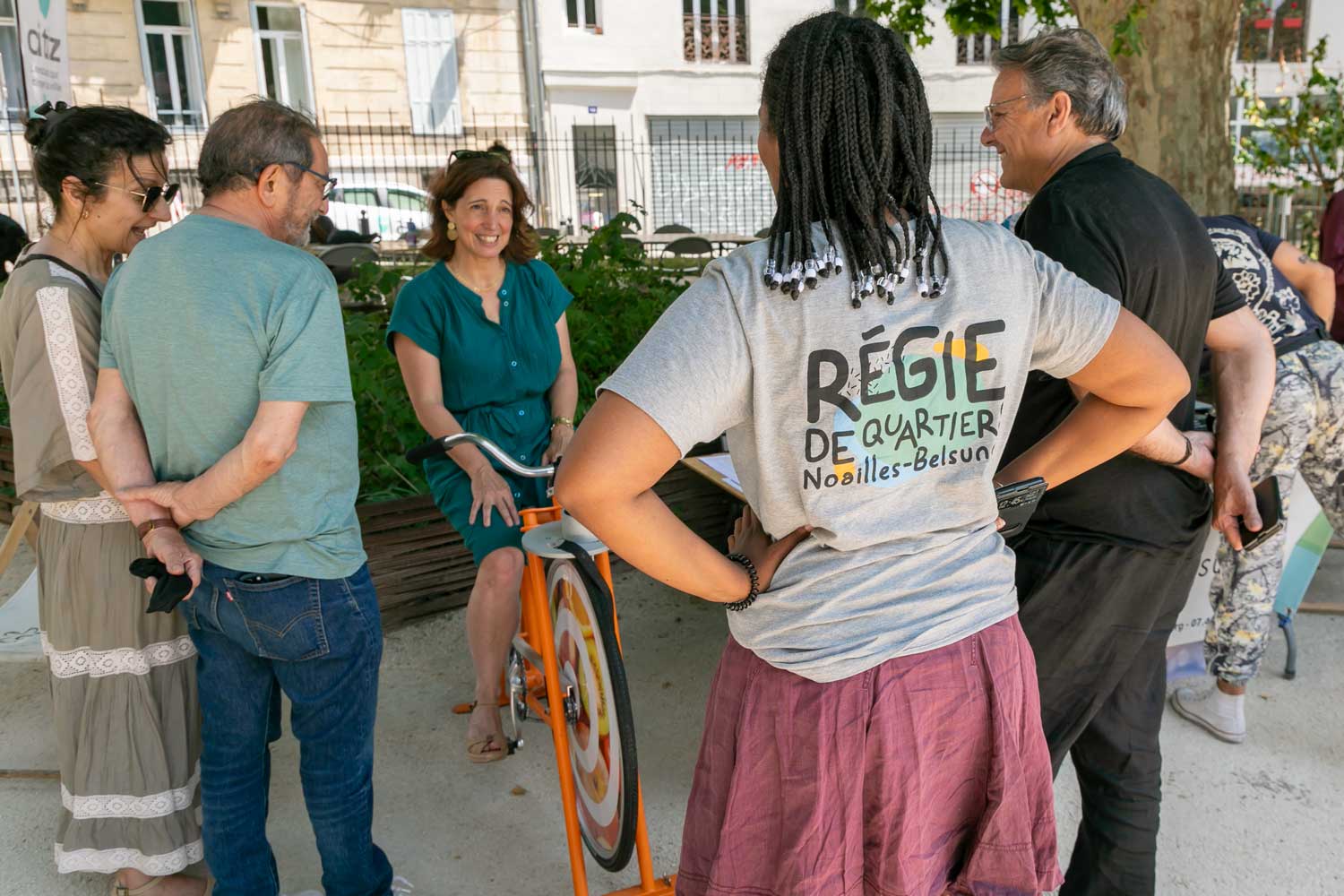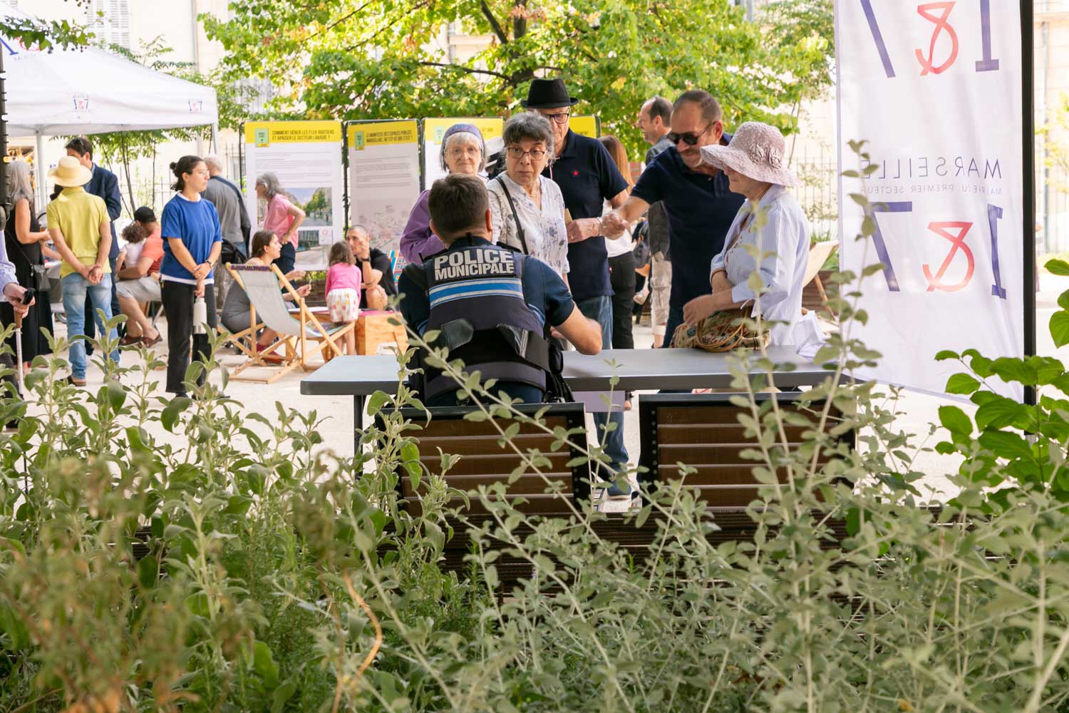 Jardin : échanges avec des urbanistes orchestrés par Cabanon Vertical, Vélo smoothie proposé par la Régie de quartier Noailles-Belsunce, stands d'infos des associations Petits frères des pauvres, accueil café par Voix au chapitre, petites animations pour les enfants par le Centre social des Abeilles.