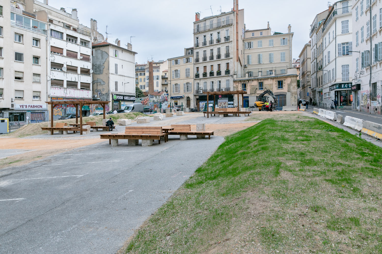 Les voitures ont laissé place nette et du mobilier urbain a été installé pour une première appropriation du site par les habitants.